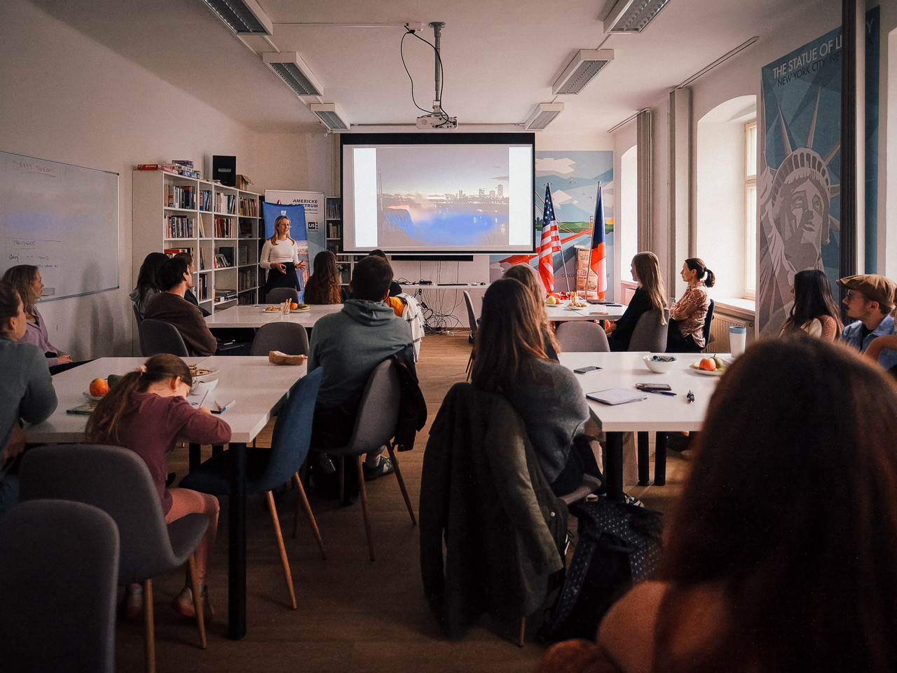 Ve středu 15. října odpoledne jsme otevřeli dveře našeho oddělení a uspořádali přátelské setkání s koordinátory programu Erasmus a také při této příležitosti představili Merrillův program, který nabízí stipendia pro studium na partnerských univerzitách v USA. Publikum zcela okouzlily absolventky Merrillova programu sdílením svých zkušeností se studiem v USA. Výzva pro podávání přihlášek na Merrillův program v akademickém roce 2026/2027 je aktuálně otevřena až do 8. prosince 2025. Momenty ze setkání zachytil fotograf Vojtěch Kmenta.