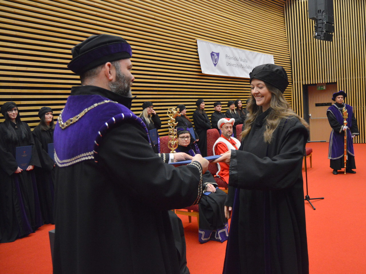 Vybraní absolventi, kteří měli možnost promluvit za své kolegy, nejčastěji do svých proslovů zařazovali slovo „děkujeme“, ohlíželi se za roky strávenými na fakultě, v Olomouci a nezapomněli na přání svým spolužákům. „Přeji nám, abychom se nikdy nenechali ukolébat sebechválou. Přistupujme k životu s pokorou, buďme pozorní, respektujme ostatní a snažme se každý den dostát hodnotám, které si s sebou neseme. Neodvracejme tvář od dnešní společnosti, konejme dobro, podporujme svobodu a demokracii a pomáhejme v jejím rozvoji,“ řekla Monika Kováčová, která má za sebou úspěšně magisterský obor Právo a v říjnu zahájila na právnické fakultě doktorské studium.