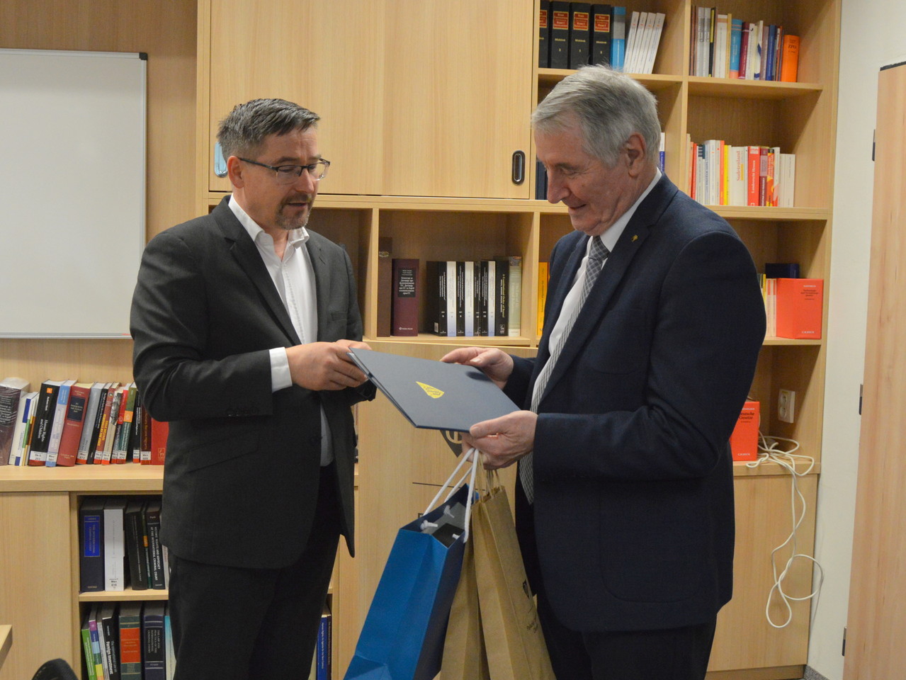 Václav Stehlík, děkan fakulty, si pro něj připravil děkovný list a speciální fakultní dárek. „Pane docente, děkuji vám za všechny ty roky, které jste věnoval naší fakultě a za vedení katedry ústavního práva. Za nadšení a chuť dojíždět k nám do Olomouce. Přeji vám do dalších let vše dobré, a hlavně pevné zdraví,“ řekl děkan.